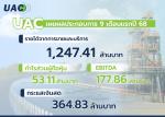 บมจ.ยูเอซี โกลบอล (UAC) รายงานผลการดำเนินงานงวด 9 เดือนแรกปี 2568 มีรายได้จากการขายและบริการ 1,247.41 ล้านบาท กำไรสุทธิส่วนของผู้ถือหุ้น 53.11 ล้านบาท และ EBITDA 177.86 ล้านบาท จากการเติบโตของธุรกิจพลังงานและปิโตรเลียม แม้เผชิญแรงกดดันจากเศรษฐกิจโลกและต้นทุนโลจิสติกส์ที่เพิ่มสูงขึ้นก็ตาม