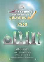 สำนักงานคณะกรรมการกำกับหลักทรัพย์และตลาดหลักทรัพย์ (ก.ล.ต.) ขอเชิญชวนผู้สนใจทุกท่านร่วมรับชมงานพิธีมอบรางวัล โครงการ "ตลาดทุนไทย ร่วมใจส่งพลังความรู้ สู่ประชาชน" เฟส 2 ปี 2568 จัดขึ้นเพื่อเชิดชูเกียรติแก่องค์กรและบุคคลที่มีส่วนร่วมในการขับเคลื่อนส่งต่อความรู้ด้านการเงินและการลงทุนให้แก่ประชาชนและผู้ลงทุน