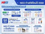 บริษัท นีโอ คอร์ปอเรท จำกัด (มหาชน) หรือ NEO เผยข้อมูลมูลค่าตลาดหลักของบริษัทในปี 2568 เติบโต 10-11% ขณะที่ตลาดโตเพียง 4% ส่วนผลการดำเนินงานปี 2568 สร้างยอดขายรวม 10,738 ล้านบาท เติบโต 6.7% YoY
