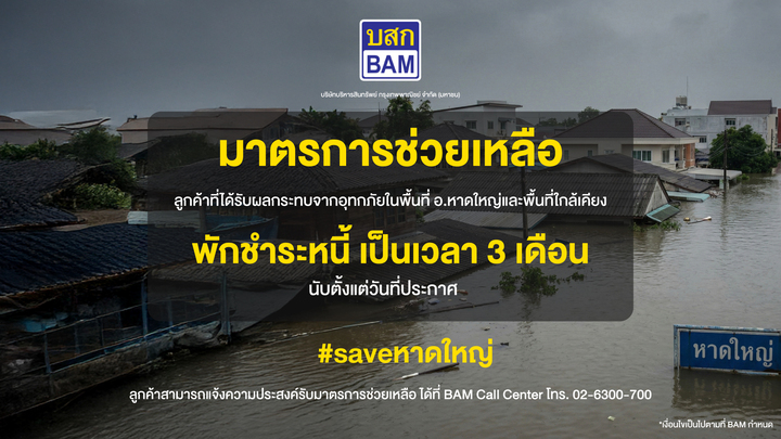 BAM ออกมาตรการพักชำระหนี้ 3 เดือน ช่วยเหลือลูกค้าประสบภัยน้ำท่วมภาคใต้