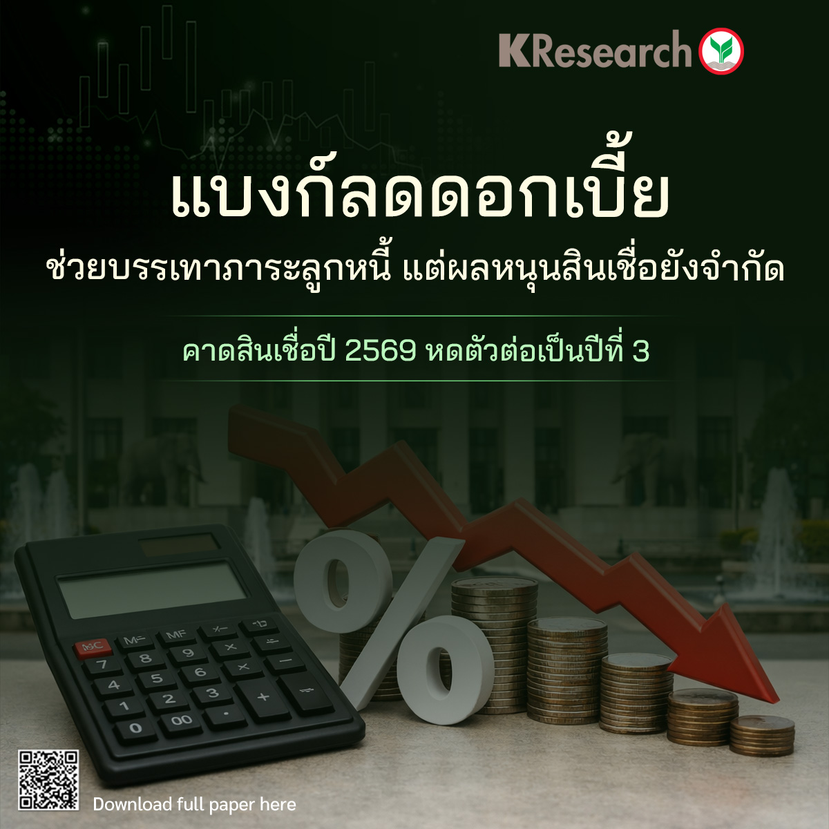 ตลอดทั้งปี 2568 ธนาคารพาณิชย์ทยอยปรับลดอัตราดอกเบี้ยเงินกู้ลง 4 ครั้ง ตามทิศทางอัตราดอกเบี้ยนโยบาย โ...