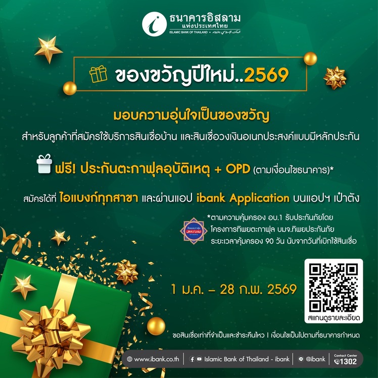 ธนาคารอิสลามแห่งประเทศไทย (ไอแบงก์) ขอร่วมส่งมอบความสุขและความห่วงใยต้อนรับปีใหม่ พ.ศ. 2569 ให้กับลู...