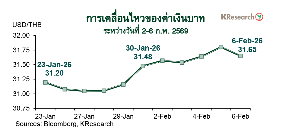 เงินบาททยอยอ่อนค่าลง โดยมีแรงกดดันจากแรงขายทำกำไรทองคำในตลาดโลกและการอ่อนค่าของสกุลเงินส่วนใหญ่ในเอเ...