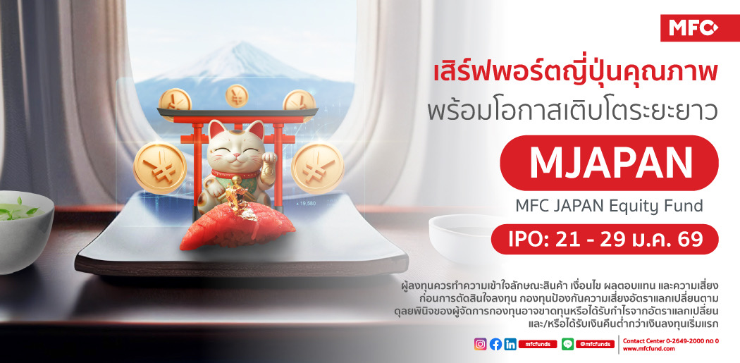 บลจ.เอ็มเอฟซี เปิดตัวกองทุน "MJAPAN" ลงทุนตลาดหุ้นญี่ปุ่นครอบคลุมหุ้นใหญ่ กลางและเล็ก ผ่านก...