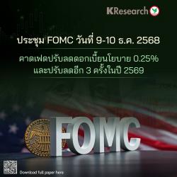 ในการประชุม FOMC วันที่ 9-10 ธ.ค. 2568 ซึ่งเป็นครั้งสุดท้ายของปี 2568 คาดเฟดมีมติไม่เป็นเอกฉันท์ ปรั...