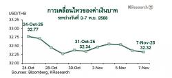ค่าเงินบาทเปิดวันนี้ (7 พ.ย.68) อ่อนค่าลงเล็กน้อย ที่ระดับ 32.40 บาทต่อดอลลาร์