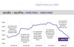 คาด SET ปรับลงต่อ กดดันจากสถานการณ์สู้รบใน ตอ. กลางที่ยืดเยื้อ แม้ราคาน้ำมันพุ่งขึ้นหลังอิหร่านปิดช่...