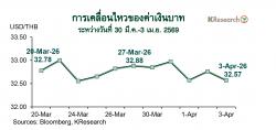 ค่าเงินบาทเปิดวันนี้ (3 เม.ย.69) แข็งค่าขึ้น ที่ระดับ 32.60 บาทต่อดอลลาร์
