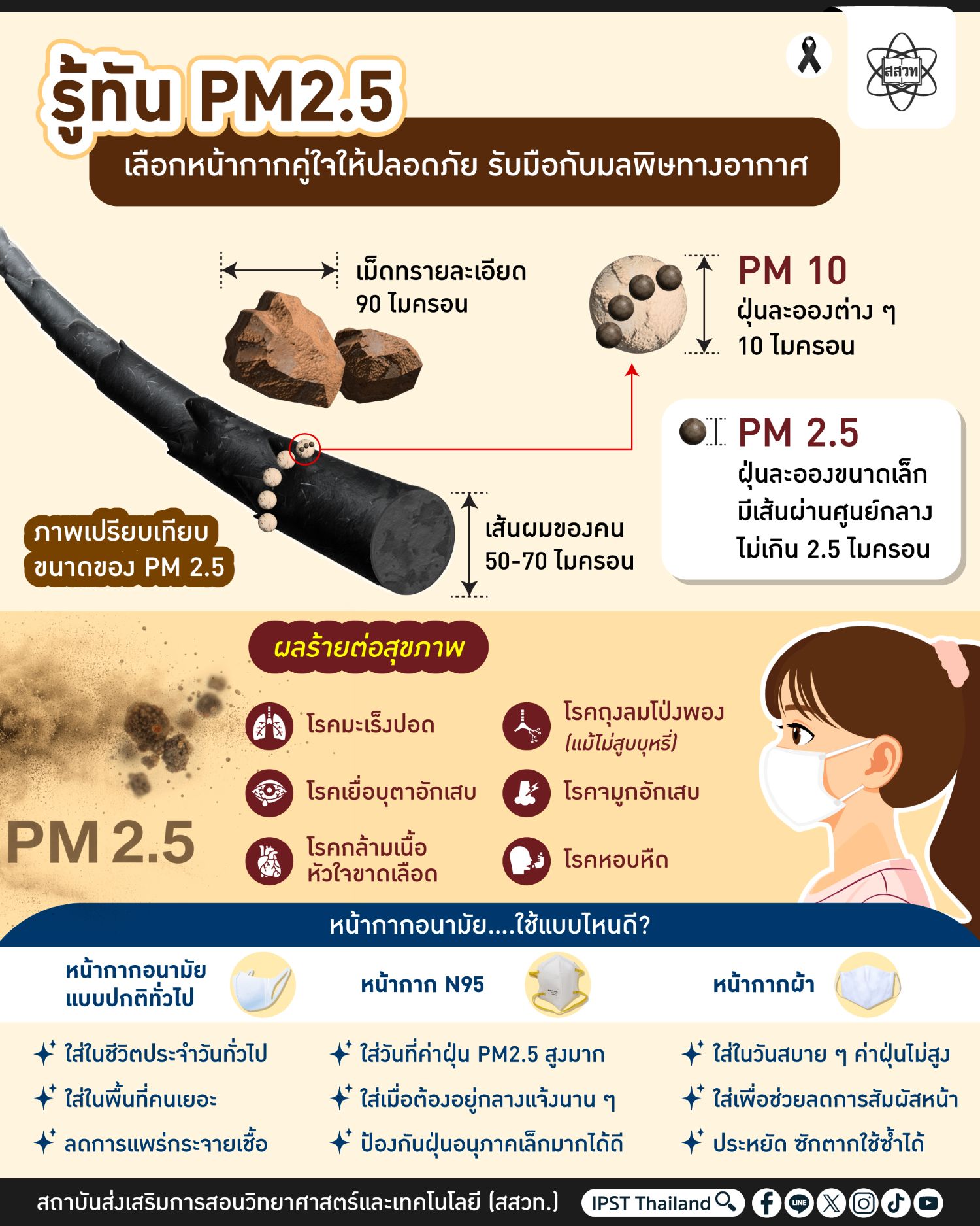 ท่ามกลางสถานการณ์ที่ฝุ่นจิ๋วเจ้าปัญหาอย่าง PM2.5 ส่งผลกระทบต่อลมหายใจของเราอย่างต่อเนื่อง จนกลายเป็นแขกไม่ได้รับเชิญที่มาหาคนไทยทุกปี "หน้ากากอนามัย" จึงไม่ใช่แค่ไอเทมเสริม แต่คือ "เกราะป้องกัน" ชิ้นสำคัญที่ขาดไม่ได้! สถาบันส่งเสริมการสอนวิทยาศาสตร์และเทคโนโลยี (สสวท.)