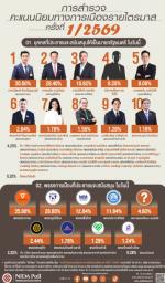 ศูนย์สำรวจความคิดเห็น "นิด้าโพล" สถาบันบัณฑิตพัฒนบริหารศาสตร์ (นิด้า) เปิดเผยผลการสำรวจ เรื่อง "การสำรวจคะแนนนิยมทางการเมืองรายไตรมาส ครั้งที่ 1/2569" ทำการสำรวจระหว่างวันที่ 19-24 มีนาคม 2569 จากประชาชนที่มีอายุ 18 ปีขึ้นไป กระจายทุกภูมิภาค ระดับการศึกษา อาชีพ และรายได้ ทั่วประเทศ รวมจำนวนทั้งสิ้น 2,500 หน่วยตัวอย่าง