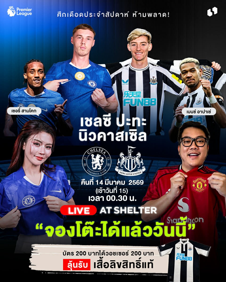 เพจ Play with FUN, be FUN สื่อกีฬาและไลฟ์สไตล์สำหรับคอฟุตบอล เดินหน้าสร้างคอมมูนิตี้แฟนบอลในประเทศไทย ล่าสุดจับมือกับร้าน Shelter ร้านอาหารยอดนิยมใกล้วงเวียนใหญ่ จัดกิจกรรมพิเศษชวนแฟนบอลร่วมเชียร์ศึกพรีเมียร์ลีกระหว่าง เชลซี พบ นิวคาสเซิล ยูไนเต็ด ในคืนวันเสาร์ที่ 14 มีนาคม 2026