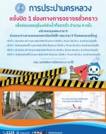 การประปานครหลวง (กปน.) แจ้งว่า กปน. มีความจำเป็นต้องดำเนินการซ่อมแซมอุโมงค์ส่งน้ำขนาดเส้นผ่านศูนย์กลาง 2,000 มิลลิเมตร ที่แตกรั่ว บริเวณคลองชวดใหญ่ ถนนพระราม 9 จำนวน 4 ครั้ง จึงต้องขอปิดช่องทางการจราจร บริเวณถนนพระราม 9 ช่วงระหว่างลานจอดรถสถานีรถไฟฟ้า พระราม 9 (ไม่ปิดทางเข้า-ออกลานจอดรถ)
