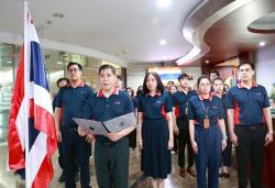 พันเอกศรัณยู วิริยเวชกุล รองผู้อำนวยการสำนักงานความร่วมมือพัฒนาเศรษฐกิจกับประเทศเพื่อนบ้าน (องค์การมหาชน) (สพพ.) นำคณะผู้บริหารและเจ้าหน้าที่ร่วมจัดกิจกรรมเคารพธงชาติและร้องเพลงชาติไทย เนื่องในโอกาสครบรอบ 108 ปี วันพระราชทานธงชาติไทย โดยผู้เข้าร่วมกิจกรรมได้ยืนตรงเคารพธงชาติและร้องเพลงชาติไทยอย่างพร้อมเพรียง