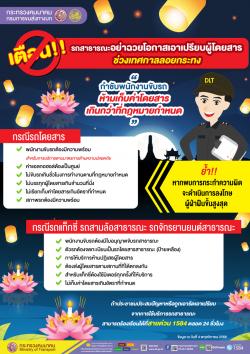 นางสาวมัลลิกา จิระพันธุ์วาณิช รัฐมนตรีช่วยว่าการกระทรวงคมนาคม เปิดเผยว่า ช่วงเทศกาลลอยกระทง (วันที่ 5 พฤศจิกายน 2568) คาดการณ์ว่าจะมีประชาชนเดินทางไปท่องเที่ยวและร่วมงานประเพณีลอยกระทง ตามสถานที่ต่างๆ ซึ่งมีการใช้บริการรถสาธารณะเป็นจำนวนมาก โดยได้กำชับให้กรมการขนส่งทางบกกำกับ ดูแล