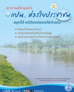 การประปานครหลวง (กปน.) ร่วมส่งเสริมเทศกาลสงกรานต์อย่างปลอดภัย ขอความร่วมมือประชาชนและนักท่องเที่ยว หลีกเลี่ยงพฤติกรรมเสี่ยงที่อาจก่อให้เกิดอันตรายต่อชีวิตและทรัพย์สิน รวมถึงการกระทำที่ผิดกฎหมาย โดยเฉพาะการลงเล่นน้ำในคลองประปา