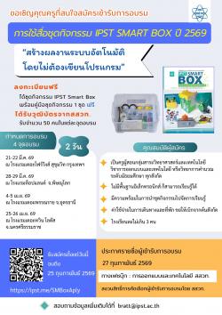 สถาบันส่งเสริมการสอนวิทยาศาสตร์และเทคโนโลยี (สสวท.) ขอเชิญครูผู้สอนกลุ่มสาระวิทยาศาสตร์และเทคโนโลยี วิชาการออกแบบและเทคโนโลยี หรือวิทยาการคำนวณ ระดับมัธยมศึกษา สมัครเข้ารับการอบรมการใช้สื่อชุดกิจกรรม IPST SMART BOX ปี 2569 "สร้างผลงานระบบอัตโนมัติโดยไม่ต้องเขียนโปรแกรม" อบรมฟรี