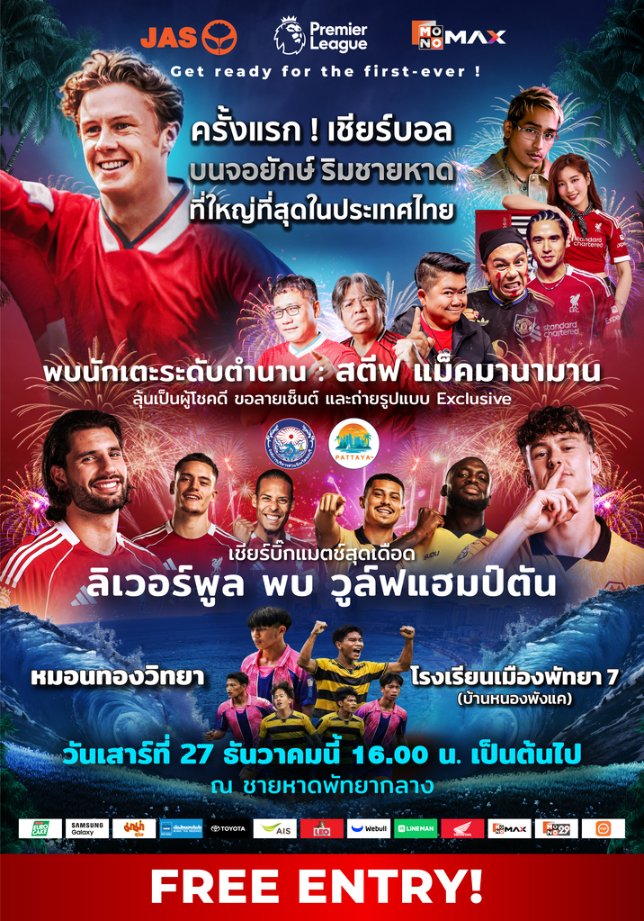 บริษัท จัสมิน อินเตอร์เนชั่นแนล จำกัด (มหาชน) หรือ JAS ผู้ถือลิขสิทธิ์หลักฟุตบอลพรีเมียร์ลีกและเอมิเรตส์เอฟเอคัพอย่างเป็นทางการแต่เพียงผู้เดียว ร่วมกับ Monomax แพลตฟอร์มหลักในการถ่ายทอดสดฟุตบอลพรีเมียร์ลีกและเอมิเรตส์เอฟเอคัพตลอด 6 ฤดูกาล จัดงาน "Monomax : Watch Party on the Beach"