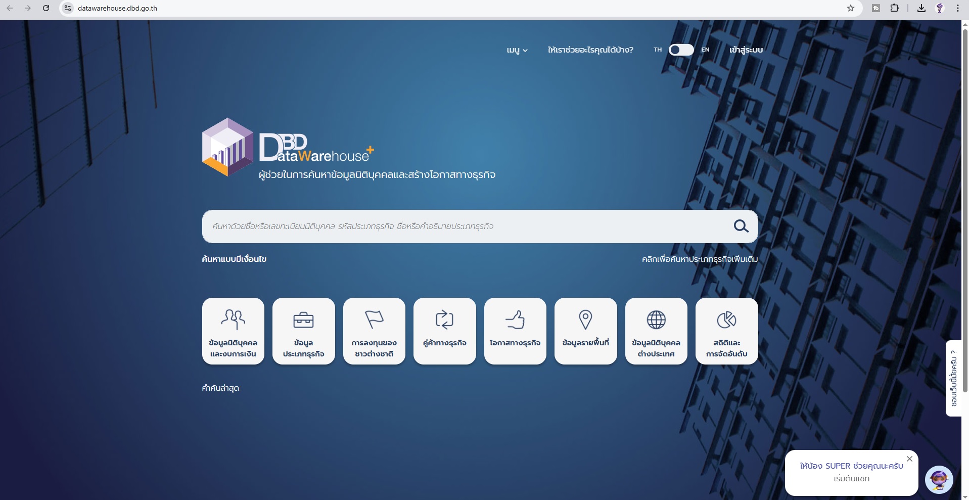 กรมพัฒนาธุรกิจการค้า เผย ระบบ "DBD DataWarehouse+" แพลตฟอร์มข้อมูลธุรกิจของประเทศมีอัตราการใช้งานเติบโตต่อเนื่อง โดยปี 2568 มียอดการเข้าดูข้อมูลนิติบุคคลรวมกว่า 19 ล้านครั้ง สะท้อนบทบาทของฐานข้อมูลภาครัฐที่ช่วยสนับสนุนผู้ประกอบการ นักวิเคราะห์ และประชาชนทั่วไปให้สามารถใช้ข้อมูลที่ถูกต้อง ทันสมัย และเชื่อถือได้