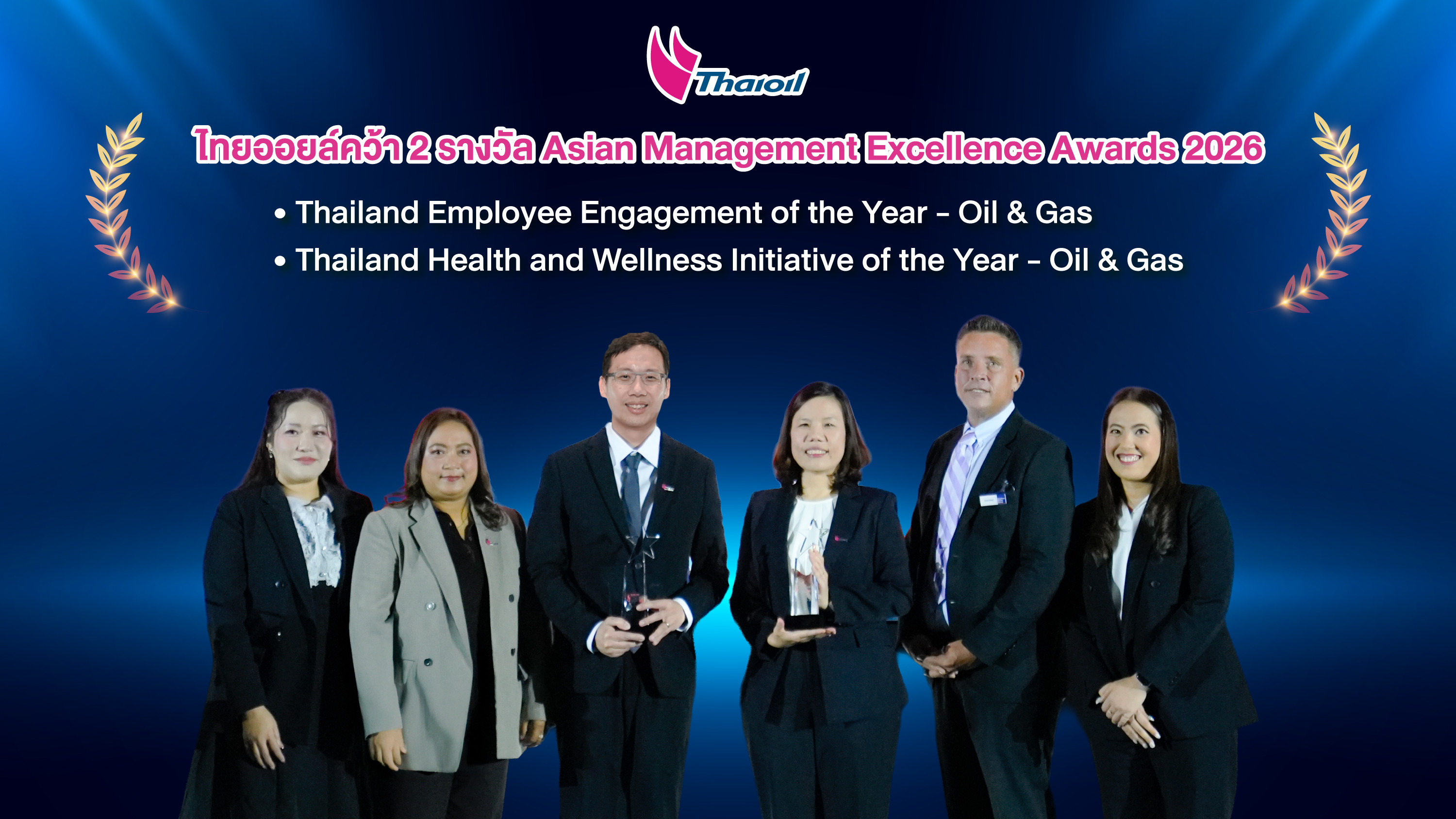 เมื่อเร็วๆ นี้ บริษัท ไทยออยล์ จำกัด (มหาชน) โดย คุณณัฐพล มีฤทธิ์ รองกรรมการผู้จัดการใหญ่-ด้านบริหารศักยภาพองค์กร พร้อมด้วย คุณจิดาภา สุนทรารัตน์พงษ์ ผู้จัดการฝ่ายบริหารจัดการทรัพยากรบุคคลและองค์กร เป็นผู้แทนบริษัทฯ เข้ารับรางวัล Asian Management Excellence Awards 2026