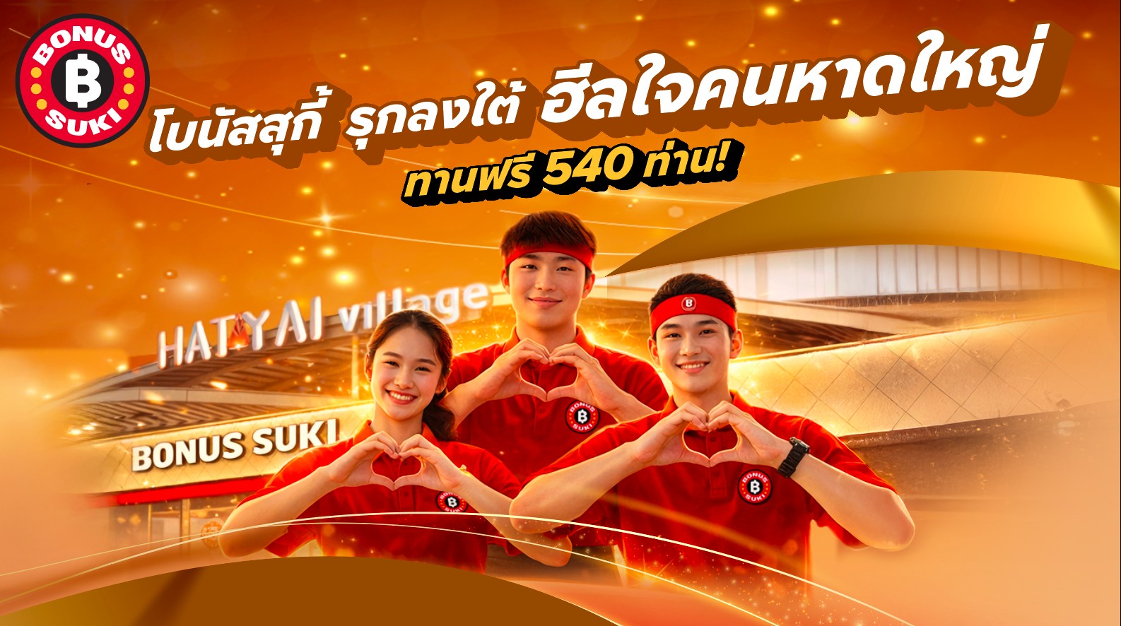 "โบนัสสุกี้" พร้อมอยู่เคียงข้างชาวหาดใหญ่ ส่งต่อกำลังใจหลังสถานการณ์น้ำท่วมที่ส่งผลกระทบต่อทั้งการใช้ชีวิตและค่าใช้จ่ายของคนในพื้นที่ แบรนด์จึงขอเป็นส่วนเล็ก ๆ ในการช่วยแบ่งเบา ด้วยการมอบมื้อพิเศษจากใจให้ชาวหาดใหญ่ ทานฟรี จำนวน 540 ท่าน!
