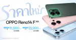OPPO Reno14 F 5G สมาร์ตโฟนที่อัปเกรดประสบการณ์ The AI Portrait Expert ถ่ายพอร์ตเทรตสวยด้วยการอัปเกรดไปอีกขั้น พร้อมมอบประสบการณ์ใช้งานที่คุ้มในราคาที่คุ้มค่ายิ่งขึ้น OPPO Reno14 F 5G (12+256GB) มาในราคาใหม่สุดพิเศษ 11,999 บาท จากราคาปกติ 12,999 บาท