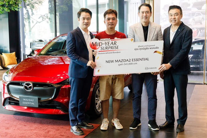 บริษัท มาสด้า เซลส์ (ประเทศไทย) จำกัด โดย นายธีร์ เพิ่มพงศ์พันธ์ ประธานกรรมการบริหารและซีอีโอ พร้อมด้วย นายภพนิพิฐ จิรวัฒนานนท์ ผู้อำนวยการฝ่ายการตลาดและนวัตกรรมดิจิทัล และ นายพิเชษฐ์ ปุณณารักษ์ ผู้อำนวยการฝ่ายขาย มอบรางวัลใหญ่รถยนต์ New Mazda2 Essential รุ่น 1.3 Prime มูลค่า 541,000 บาท