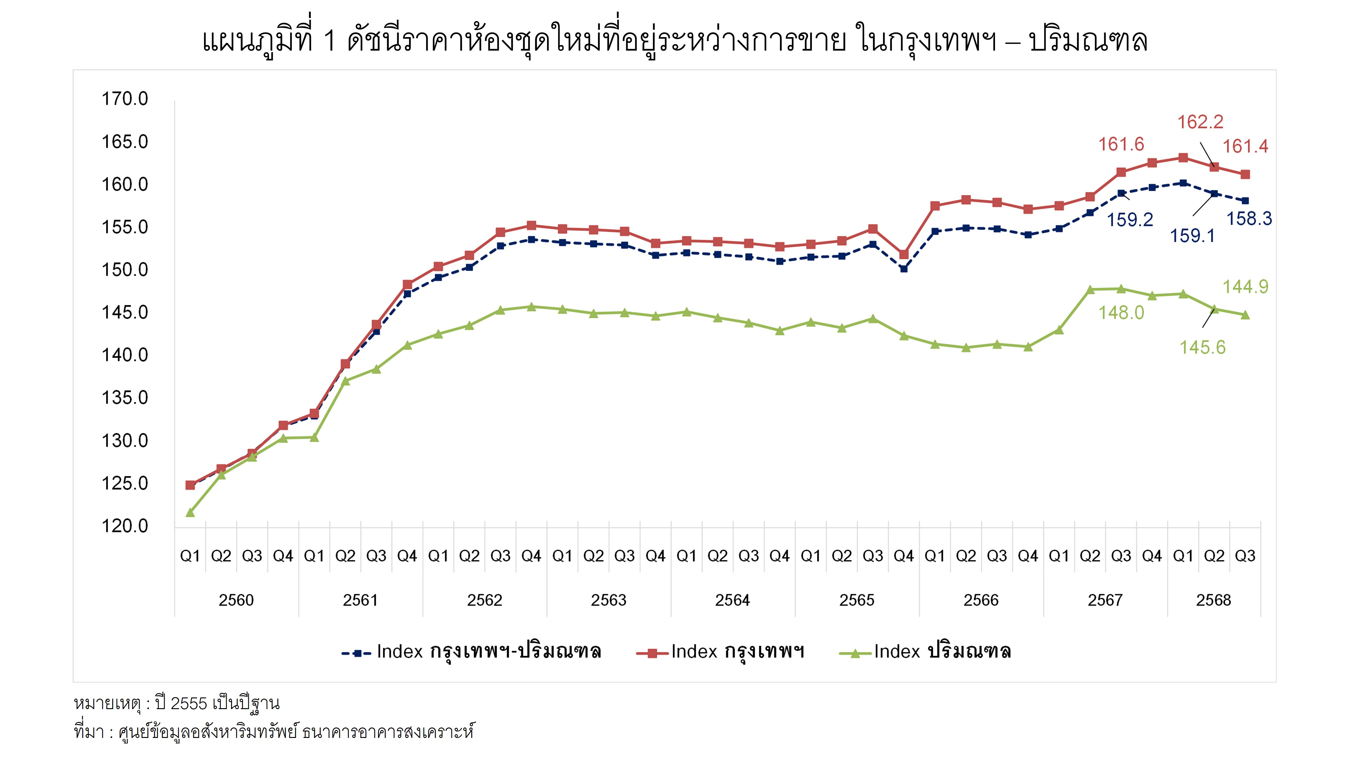 ดัชนีราคาห้องชุดใหม่ที่อยู่ระหว่างการขาย ไตรมาส 3 ปี 2568 ในกรุงเทพฯ - ปริมณฑล