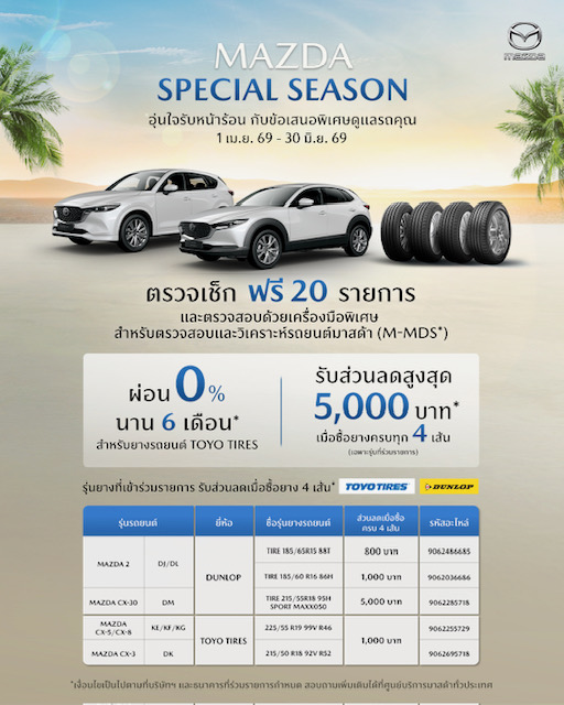 มาสด้าห่วงใยลูกค้า จัดแคมเปญ "MAZDA SPECIAL SEASON อุ่นใจรับหน้าร้อน กับข้อเสนอพิเศษดูแลรถคุณ" มอบข้...