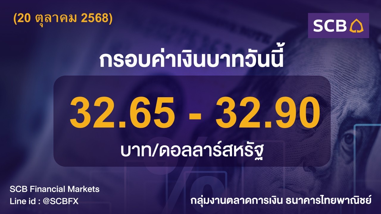 • กลุ่มงานตลาดการเงิน ธนาคารไทยพาณิชย์ ประเมินค่าเงินบาทวันนี้เคลื่อนไหวในกรอบ 32.65-32.90 บาท/ดอลลาร์