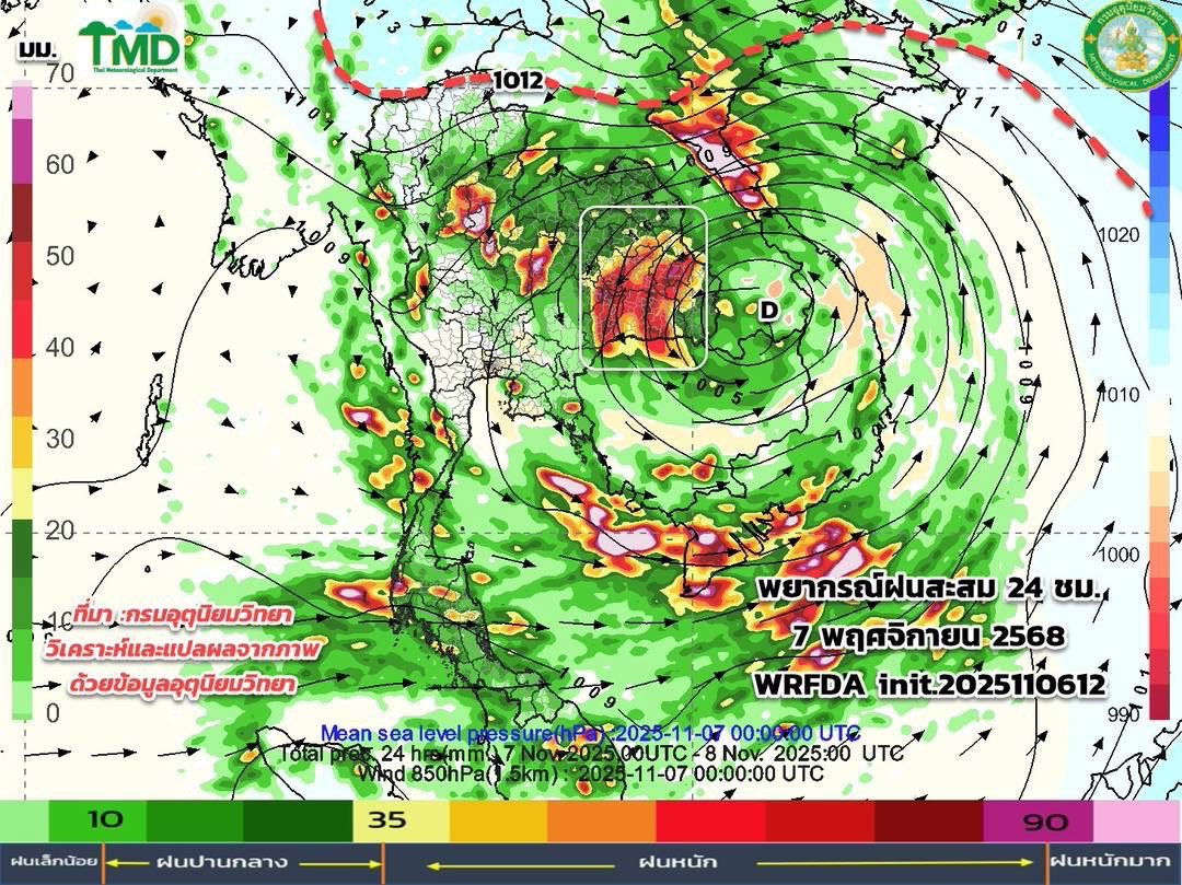 กรมอุตุนิยมวิทยา พยากรณ์อากาศประจำวันนี้ (7 พ.ย. 68) โดยเน้นย้ำถึงอิทธิพลของพายุและลมมรสุม ซึ่งทำให้หลายพื้นที่ของประเทศไทยมีฝนตกหนักถึงหนักมาก และมีลมแรง