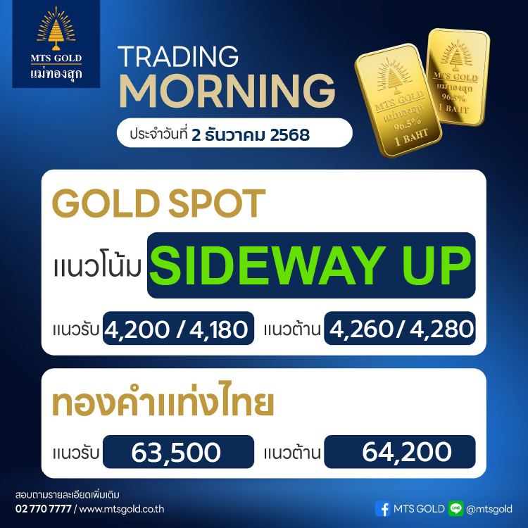 ในเชิงเทคนิค ราคาทองคำยังคงรักษาแนวโน้มหลักเป็นขาขึ้น โดยในระยะสั้นนี้มีการเคลื่อนไหวในลักษณะ "Sideway Up" แต่นักลงทุนควรเฝ้าระวังและบริหารจัดการความเสี่ยง เนื่องจากมีความผันผวน และอาจมีแรงขายทำกำไรในระยะสั้น โดยภาพรวมยังมองว่าเป็นโอกาสในการย่อซื้อ ประเมินกรอบระยะสั้น แนวรับที่ 4,200-4,180 เหรียญ และแนวต้านที่ 4,250-4,280 เหรียญ ขณะที่ทองไทยจะมีแนวรับที่ 63,500 บาท และแนวต้านที่ 64,200 บาท