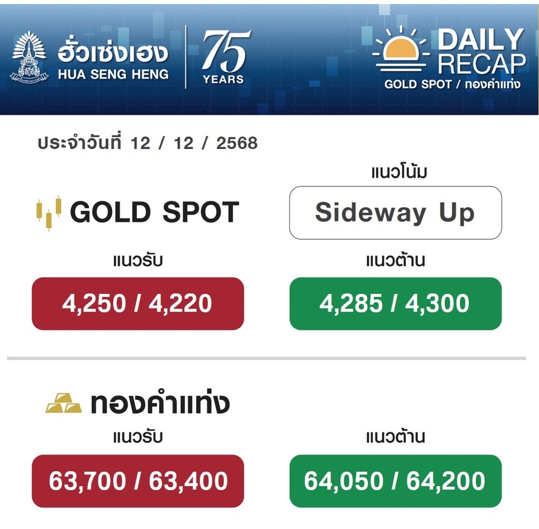 ทองเปิดตลาดวันนี้ (12 ธ.ค. 68) พุ่งขึ้น 500 บาท ทองรูปพรรณ ขายออก 64,750 บาท