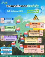 อากาศเย็นในตอนเช้ากับมีฝน ร้อยละ 20 ของพื้นที่ อุณหภูมิต่ำสุด 21-22 องศาเซลเซียส