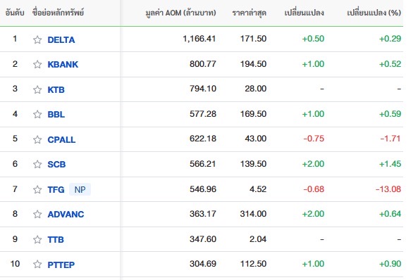 10 อันดับหลักทรัพย์ที่มีมูลค่าการซื้อขายสูงสุด
