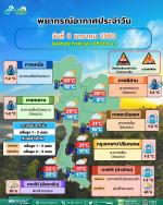 กรมอุตุนิยมวิทยา พยากรณ์อากาศ 24 ชั่วโมงข้างหน้า วันที่ 8 มกราคม 2569 ประเทศไทยตอนบนมีอากาศหนาวเย็นลง กับมีลมแรง และอุณหภูมิจะลดลงอีก 1-2 องศาเซลเซียส โดยภาคเหนือ ภาคตะวันออกเฉียงเหนือ และภาคกลางตอนบนมีอากาศเย็นถึงหนาว ส่วนภาคกลางตอนล่าง รวมทั้งกรุงเทพมหานครและปริมณฑล ภาคตะวันออก และภาคใต้ตอนบนมีอากาศเย็นในตอนเช้า เนื่องจากบริเวณความกดอากาศสูงหรือมวลอากาศเย็นกำลังแรงจากประเทศจีนปกคลุมประเทศไทยตอนบน ขอให้ประชาชนดูแลรักษาสุขภาพเนื่องจากสภาพอากาศที่หนาวเย็นลง รวมทั้งระวังอันตรายจากอัคคีภัยเนื่องจากสภาพอากาศแห้งและลมแรง