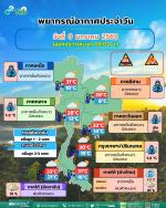 กรมอุตุนิยมวิทยา พยากรณ์อากาศ 24 ชั่วโมงข้างหน้า วันที่ 9 มกราคม 2569 ประเทศไทยตอนบนมีอากาศหนาวเย็น กับมีลมแรง เนื่องจากบริเวณความกดอากาศสูงหรือมวลอากาศเย็นกำลังแรงจากประเทศจีนปกคลุมประเทศไทยตอนบน ขอให้ประชาชนดูแลรักษาสุขภาพเนื่องจากสภาพอากาศที่หนาวเย็นลง รวมทั้งให้ระวังอันตรายจากอัคคีภัยเนื่องจากสภาพอากาศแห้งและลมแรง