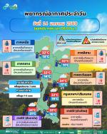 อากาศเย็นกับมีหมอกในตอนเช้า และมีหมอกหนาบางพื้นที่ อุณหภูมิจะสูงขึ้น 1-2 องศาเซลเซียส อุณหภูมิต่ำสุด 16-18 องศาเซลเซียส
