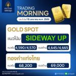 ประเมินแนวรับไว้ที่บริเวณ 4,590-4,570 เหรียญ ขณะที่แนวต้านอยู่ที่ระดับ 4,645-4,665 เหรียญ ขณะที่ทองไทยจะมีแนวรับที่ 68,200 บาท และแนวต้านที่ 69,000 บาท