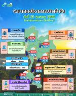 กรมอุตุนิยมวิทยา พยากรณ์อากาศ 24 ชั่วโมงข้างหน้า วันที่ 23 มกราคม 2569 ประเทศไทยตอนบน และภาคใต้ตอนบนจะมีอุณหภูมิลดลง 1-2 องศาเซลเซียส กับมีลมแรง เนื่องจากบริเวณความกดอากาศสูงหรือมวลอากาศเย็นกำลังค่อนข้างแรงจากประเทศจีนได้แผ่ปกคลุมประเทศไทยตอนบน ขอให้ประชาชนดูแลรักษาสุขภาพเนื่องจากสภาพอากาศที่เปลี่ยนแปลงและอากาศหนาวเย็นไว้ด้วย