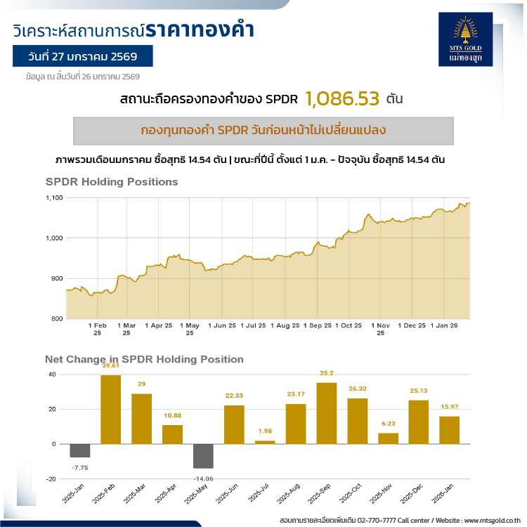 ด้านกองทุนทองคำ SPDR ยังคงไม่มีการเปลี่ยนแปลงปริมาณการถือครอง โดยปัจจุบันมียอดซื้อสุทธิ 14.54 ตัน ขณะที่หลายสำนักวิจัยเริ่มปรับเพิ่มเป้าหมายราคาทองคำ อาทิ State Street ประเมินเป้าราคาที่ 5,600 เหรียญ ในปีนี้ ขณะที่ Yardeni Research ตั้งเป้า 6,000 เหรียญ ในช่วงปลายปี