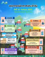 กรมอุตุนิยมวิทยา พยากรณ์อากาศ 24 ชั่วโมงข้างหน้า วันที่ 27 มกราคม 2569 ประเทศไทยยังคงมีอากาศเย็นกับมีหมอกในตอนเช้า โดยภาคเหนือและภาคตะวันออกเฉียงเหนือยังคงมีอากาศเย็นถึงหนาว เนื่องจากบริเวณความกดอากาศสูงหรือมวลอากาศเย็นกำลังปานกลางปกคลุมประเทศไทยตอนบนและภาคใต้ตอนบน ขอให้ประชาชนดูแลรักษาสุขภาพเนื่องจากสภาพอากาศที่เปลี่ยนแปลง รวมทั้งเพิ่มความระมัดระวังในการสัญจรผ่านบริเวณที่มีหมอกไว้ด้วย