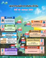 อากาศเย็นในตอนเช้า โดยมีฝนเล็กน้อยบางแห่ง อุณหภูมิต่ำสุด 19-24 องศาเซลเซียส อุณหภูมิสูงสุด 30-33 องศาเซลเซียส