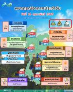 อุณหภูมิสูงสุด 33-35 องศาเซลเซียส ลมตะวันออกเฉียงใต้ ความเร็ว 10-20 กม./ชม.