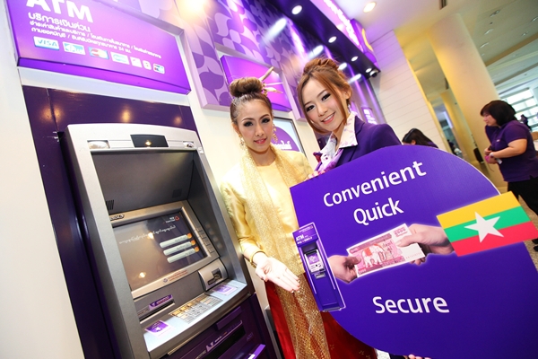 • ลูกค้าก็สามารถโอนเงินได้ที่ตู้เอทีเอ็มซึ่งมีภาษาพม่ารองรับทุกตู้ได้ทั่วประเทศ