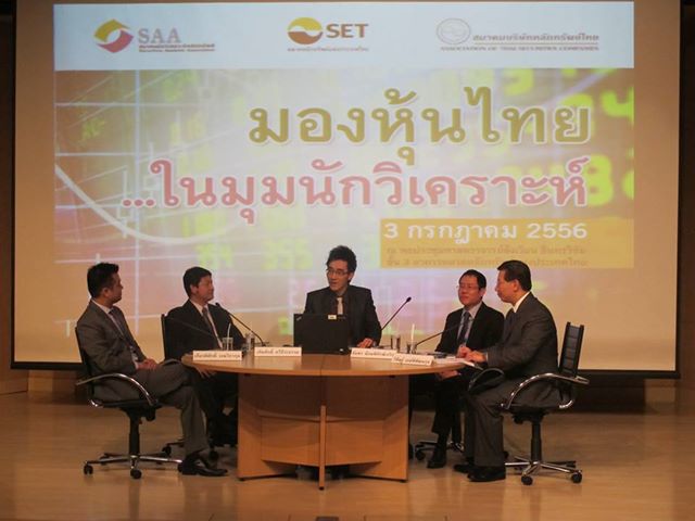ตลาดหลักทรัพย์ฯ จัดเสวนา หัวข้อ “มองหุ้นไทย ในมุมนักวิเคราะห์” โดย ดร.วิศิษฐ์ องค์พิพัฒนกุล กรรมการผู้จัดการ บล. ทรีนีตี้ เกียรติศักดิ์ เจนวิภากุล กรรมการผู้จัดการ สายงานวิจัย บล. ไทยพาณิชย์ เทิดศักดิ์ ทวีธีระธรรม ผู้อำนวยการอาวุโสฝ่ายวิจัยหลักทรัพย์ บล. เอเซีย พลัส ชัยพร น้อมพิทักษ์เจริญ ผู้ช่วยกรรมการผู้อำนวยการ สายงานวิจัยลูกค้าบุคคล บล. บัวหลวง ณ อาคาร ตลาดหลักทรัพย์แห่งประเทศไทย เมื่อ 3 ก.ค. นี้ โดยได้รับความสนใจจากผู้ลงทุนเป็นจำนวนมาก