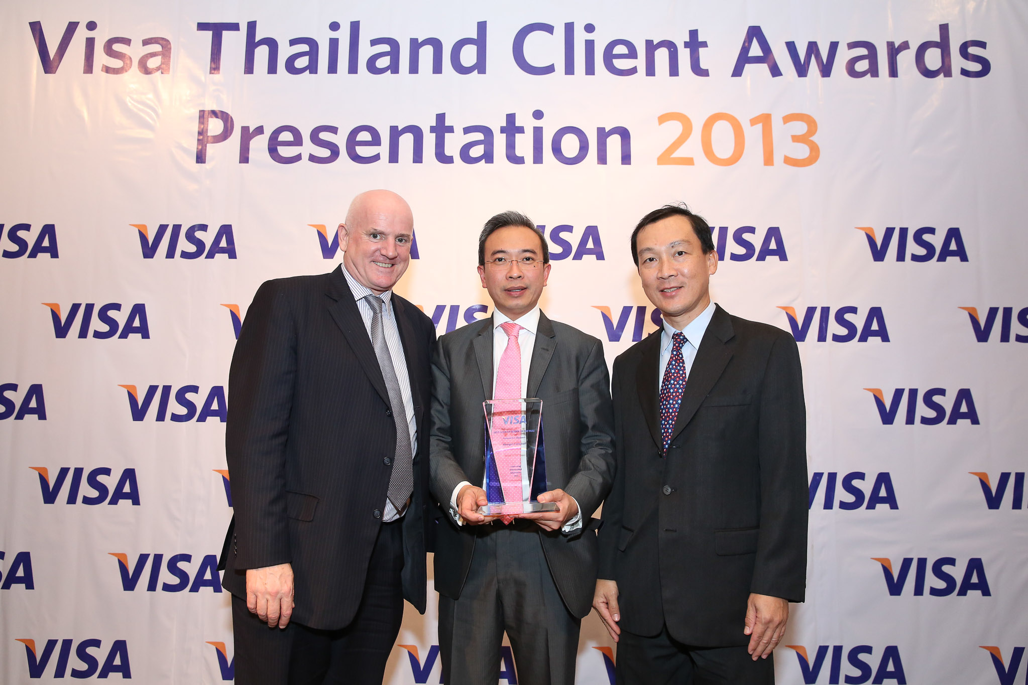 นายฐากร ปิยะพันธ์ กรรมการผู้จัดการใหญ่ กรุงศรี คอนซูมเมอร์ (กลาง) รับรางวัล The Best Business Leader of the Year in the Innovative Channel จากนายสมบูรณ์ ครบธีรนนท์ ผู้จัดการประจำประเทศไทยและพม่า วีซ่า อินเตอร์เนชั่นแนล เอเชีย-แปซิฟิค โดยมี มร. ปีเตอร์ มาห์ ผู้จัดการทั่วไป วีซ่า อินเตอร์เนชั่นแนล ประจำภูมิภาคเอเซียตะวันออกเฉียงใต้ ร่วมแสดงความยินดี ซึ่งพิธีมอบรางวัลดังกล่าวจัดขึ้นเมื่อเร็วๆนี้ที่โรงแรมคอนราด
