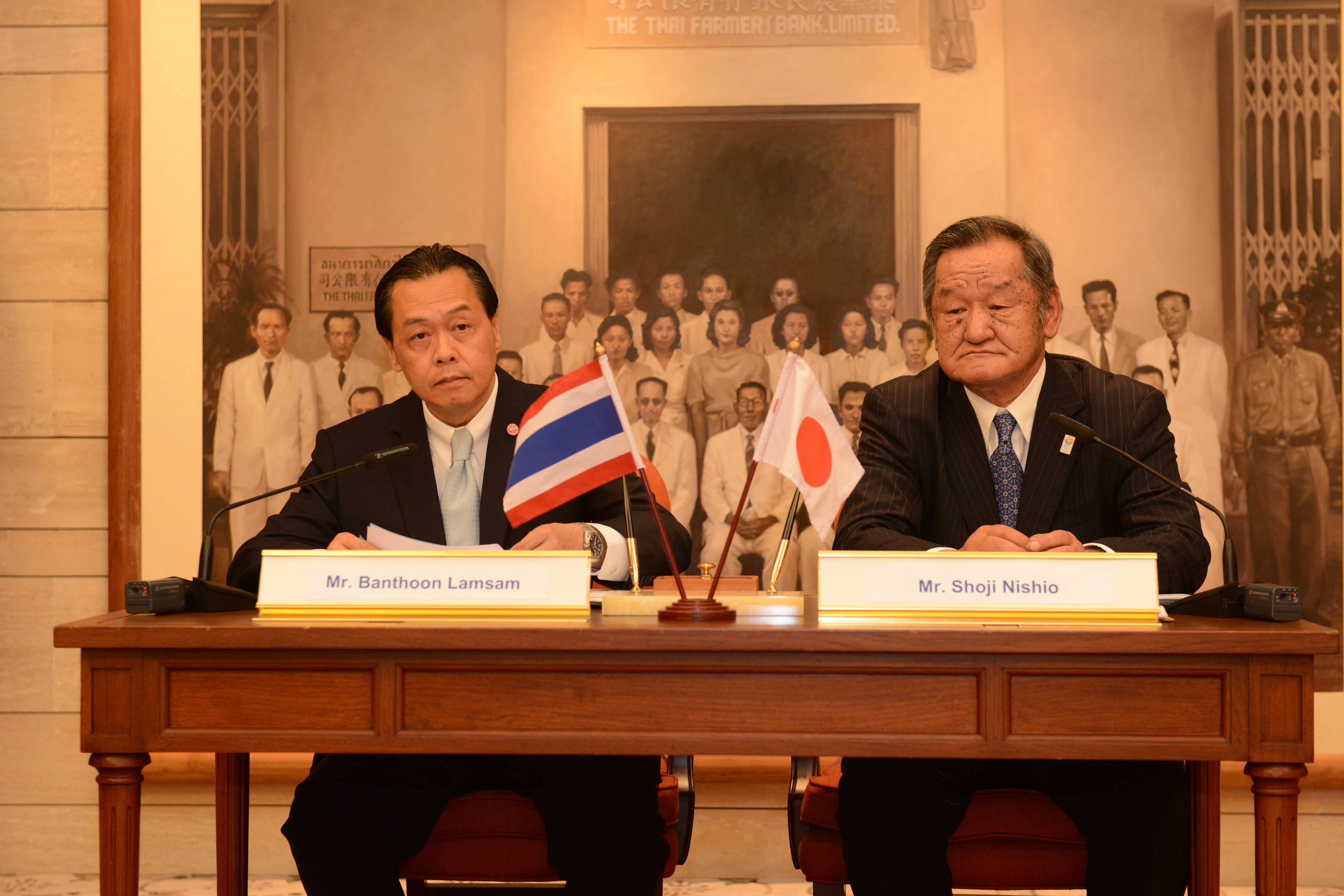 นายบัณฑูร ล่ำซำ ประธานกรรมการ ธนาคารกสิกรไทย และนายโชจิ นิชิโอะ ผู้อำนวยการบริหาร ฝ่ายธุรกิจผู้ประกอบการวิสาหกิจขนาดกลางและขนาดย่อม หอการค้าและอุตสาหกรรมแห่งโตเกียว ลงนามความร่วมมือระหว่างกันในการจัดสัมมนาให้ความรู้แก่นักลงทุนญี่ปุ่นและการเจรจาจับคู่ธุรกิจของผู้ประกอบการไทย-ญี่ปุ่น เพื่อส่งเสริมการค้าการลงทุนระหว่างสองประเทศ และดึงดูดนักลงทุนญี่ปุ่นเข้ามาทำธุรกิจในไทยให้มากขึ้น ณ ธนาคารกสิกรไทย อาคารพหลโยธิน เมื่อเร็ว ๆ นี้
