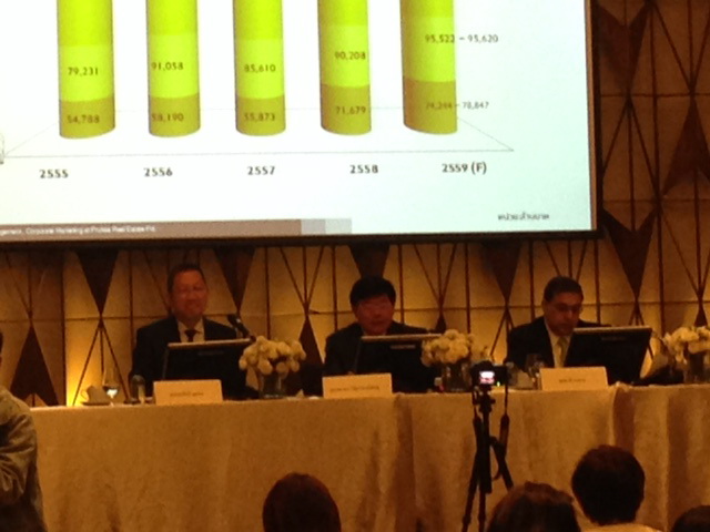 ด้าน นายเลอศักดิ์ จุลเทศ รองประธานกรรมการบริหารและกรรมการผู้อำนวยการ บริษัทพฤกษาฯ กล่าวว่า เป้าหมายรายได้ 52,000 ล้านบาท จะมาจากยอดรับรู้รายได้ (Backlog) 25,938 ล้านบาท โดยจะสามารถรับรู้รายได้ในปี 2559 นี้ถึง 15,278 ล้านบาท ขณะที่บริษัทยังคงมีโครงการที่อยู่ระหว่างการขายอยู่อีกจำนวน 173 โครงการ มูลค่า 81,000 ล้านบาท โดยเป็นบ้านพร้อมขายที่จะสามารถส่งมอบให้กับประชาชนที่เลือกซื้อที่อยู่อาศัยในโครงการต่างๆ ของพฤกษา ซึ่งยังสามารถใช้สิทธิ์ลดหย่อนค่าธรรมเนียมตามมาตรการของภาครัฐภายในเดือนเมศาสนนี้ มูลค่ากว่า 15,000 ล้านบาท รวมถึงแผนการเปิดโครงการใหม่จำนวน 60-65 โครงการ มูลค่ารวม 50,000-54,000 ล้านบาท เป็นแนวราบกว่า 75% ซึ่งปัจจุบันมีรอบการโอน Business Cycle Time ต่ำกว่า 75 วัน แบ่งเป็น ทาวน์เฮ้าส์ 42-44 โครงการ บ้านเดี่ยว 12-14 โครงการ และคอนโดมิเนียม 6-7 โครงการ