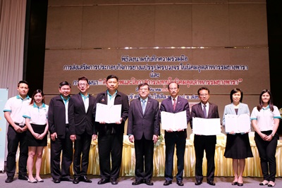 นางวรรธนา มงคลศรี (ที่ 2 จากขวา) รองกรรมการผู้จัดการ ธนาคารเพื่อการส่งออกและนำเข้าแห่งประเทศไทย (EXIM BANK) ถ่ายภาพร่วมกับนายพรชัย ตระกูลวรานนท์ (ที่ 5 จากขวา) ผู้ช่วยรัฐมนตรีประจำกระทรวงอุตสาหกรรม และ ดร.วีรพงศ์ ไชยเพิ่ม (ที่ 5 จากซ้าย) ผู้ว่าการนิคมอุตสาหกรรมแห่งประเทศไทย (กนอ.)