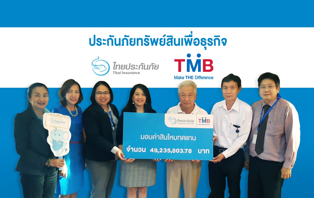 ทีเอ็มบี หรือธนาคารทหารไทย จำกัด (มหาชน) มุ่งมั่นผลักดันธุรกิจเอสเอ็มอี ให้เติบโตเต็มศักยภาพมาโดยตลอด จึงได้มีผลิตภัณฑ์และบริการทางการเงินมาสนับสนุนและช่วยเหลือการทำธุรกิจของลูกค้าทุกสถานการณ์ เมื่อเร็วๆนี้ นายจตุรงค์ สังขวาสี (ขวาสุด) ผู้บริหารความสัมพันธ์ สำนักงานเขตลูกค้าธุรกิจ ทีเอ็มบี และ นางพิมพ์นรา นะมาศรี (ที่4จากซ้าย) ผู้ช่วยผู้อำนวยการฝ่ายสายงานบริการการขายธุรกิจ บริษัท ไทยประกันภัย จำกัด (มหาชน) ร่วมกันมอบค่าสินไหมจากประกันอัคคีภัย จำนวนเงิน 49,235,803.78 บาท ให้กับ บริษัท ซันฟลาวอุตสาหกรรม จำกัด และ บริษัท ซันฟลาวสตาร์ช อินดัสตรี จำกัด ที่ได้รับความเสียหายจากไฟไหม้โรงงานและคลังสินค้า โดย นายสุทธิพงษ์ สีตะประดิษฐ์ (ที่ 3จากขวา) ประธานบริษัทในเครือซันฟลาวฯ ผู้รับมอบสินไหม เผยว่าอุบัติเหตุครั้งนี้ทำให้ตนและครอบครัวเห็นว่าการทำประกันเป็นสิ่งสำคัญที่ไม่ควรมองข้าม เพราะอุบัติเหตุเกิดขึ้นได้ตลอดเวลาและจะนำเงินไปซ่อมแซมและฟื้นฟูสถานประกอบการต่อไป ทีเอ็มบี มีประกันอัคคีภัยที่ให้ความคุ้มครองและครอบคลุมธุรกิจ SME และธุรกิจระดับ Corporate ได้มากกว่า อาทิ ประกันอัคคีภัย (TMB No Deductible Insurance ประกันอัคคีภัยคุ้มครองหลักประกันและทรัพย์สินธุรกิจ ที่ไม่มีค่ารับผิดส่วนแรก) ประกันความเสี่ยงภัยทุกชนิด